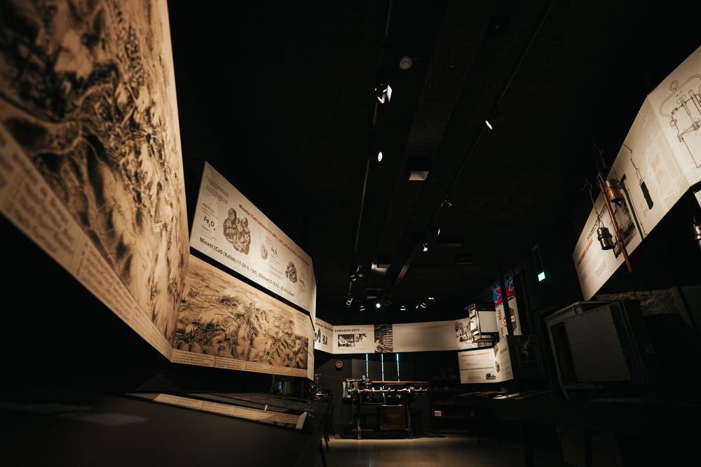 L'exposition présente la production de lampes de montagne dites "Karbidsluuchten", de wagons miniers luxembourgeois ("Buggies") et bien sûr de chaussures. Le musée est situé juste à côté du centre culturel Schungfabrik et est dédié au rôle important des mineurs et du mouvement ouvrier qui ont façonné la culture de la région.