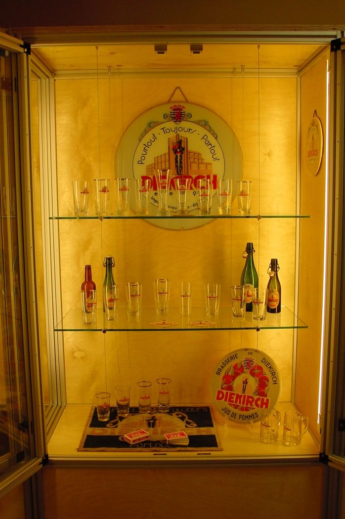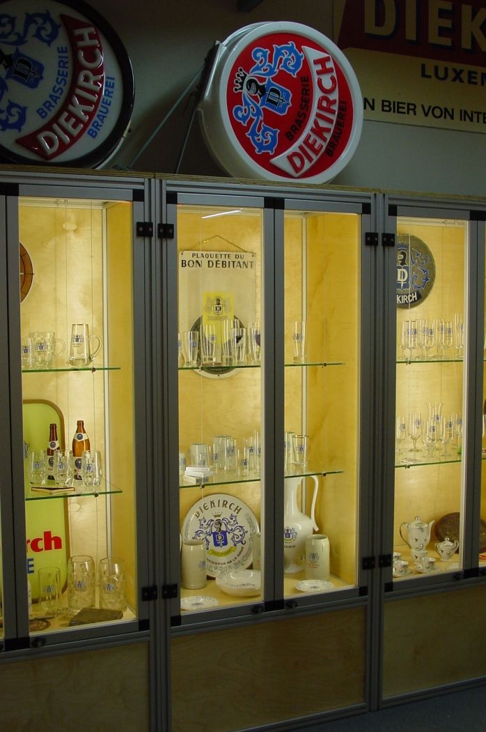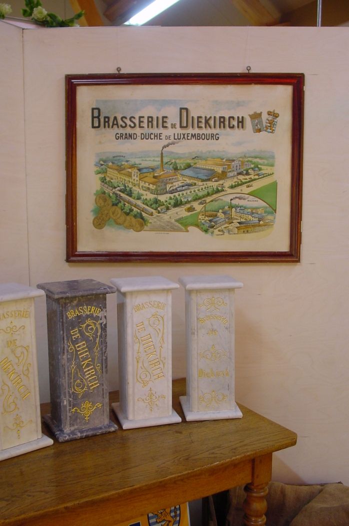 Collection privée retraçant l’évolution publicitaire de la Brasserie de Diekirch sur plus d’un siècle. Exposition de 1000 pièces (boîtes d’allumettes, enseignes lumineuses, verres, lithographies, marmorites, ...).