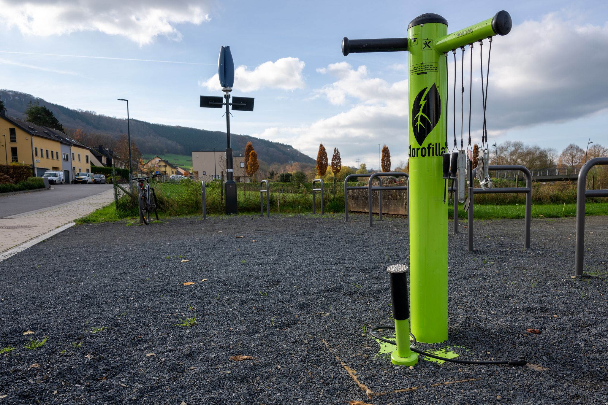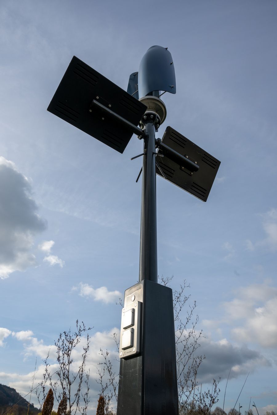 À la station de recharge et de service pour vélos, vous pouvez recharger gratuitement votre vélo et trouver une sélection d'outils pour les réparations.