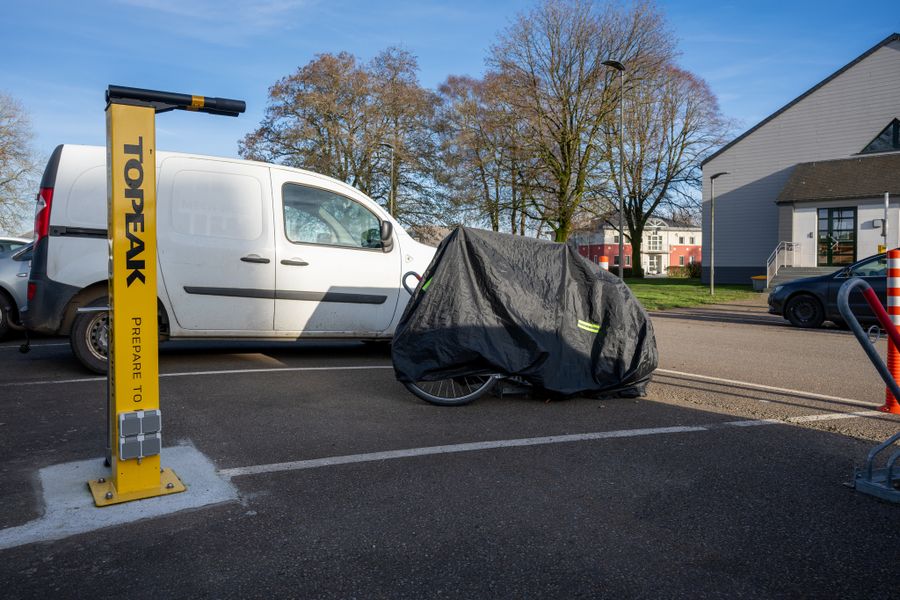 À la station de recharge et de service pour vélos, vous pouvez recharger gratuitement votre vélo et trouver une sélection d'outils pour les réparations de vélo, ainsi qu'un distributeur automatique de pièces de rechange.