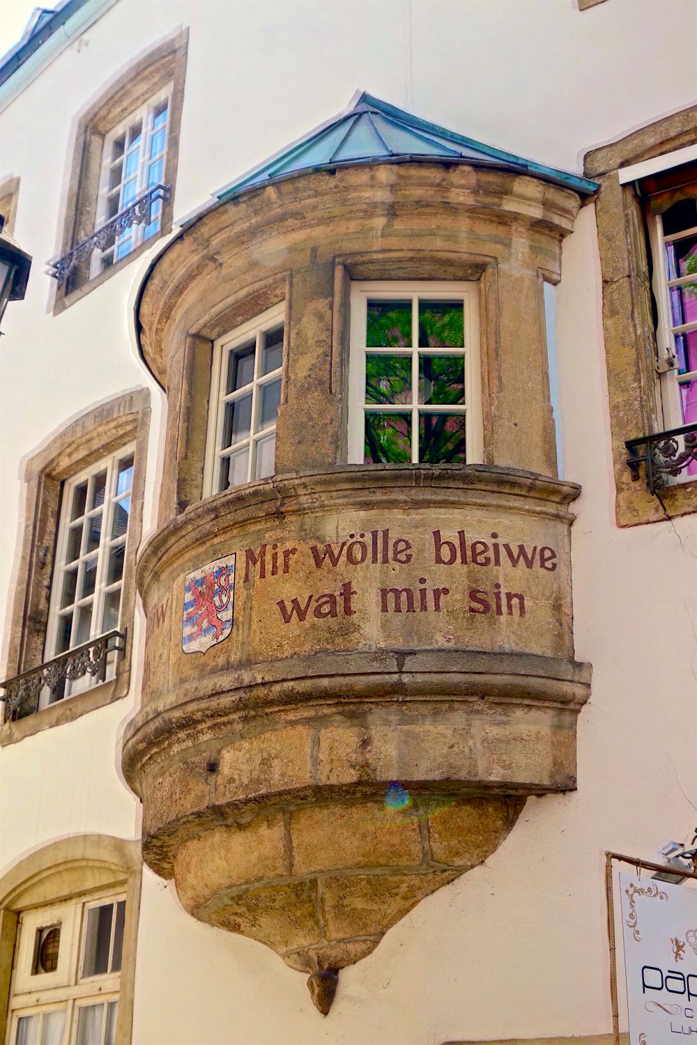 "Mir wëlle bleiwe wat mir sinn" est la devise nationale du Luxembourg et sa traduction signifie "Nous voulons rester ce que nous sommes".