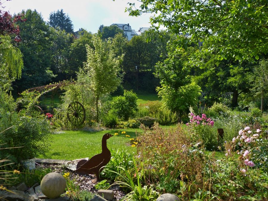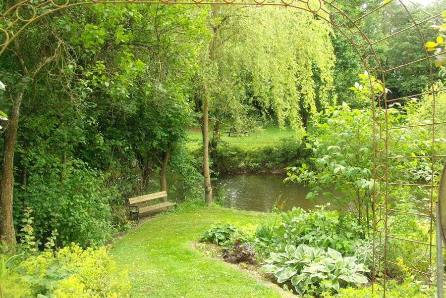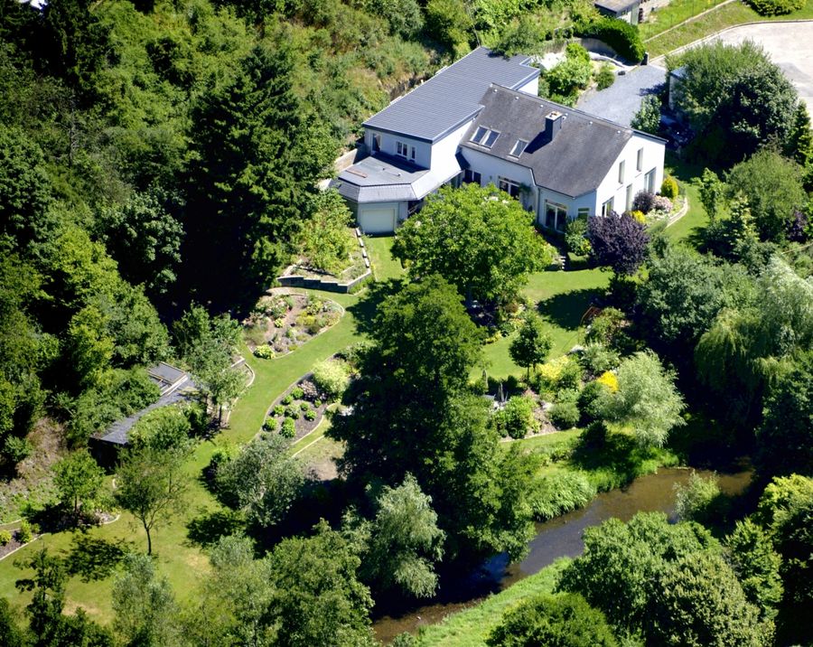 Dans le jardin le long de la Wiltz, une terrasse est mise à disposition exclusivement pour nos invités. Vous pourrez y passer des moments de détente et clôturer la journée avec un barbecue (au charbon de bois).