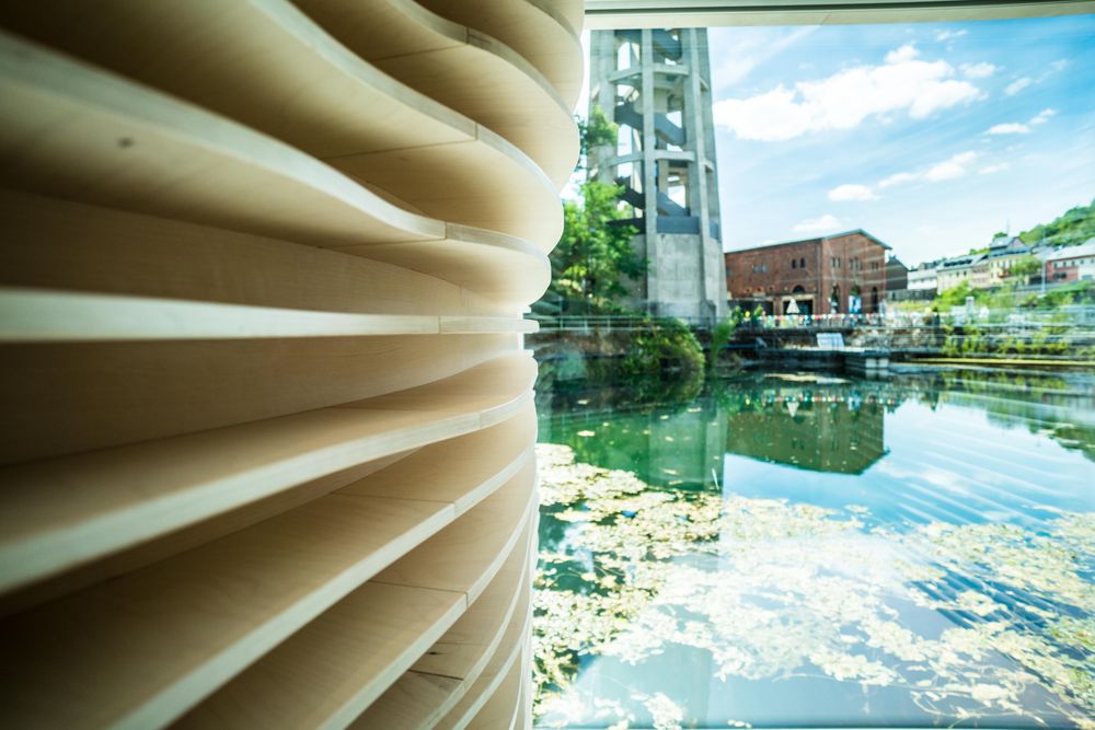 Un "Kabaischen" particulièrement insolite du sentier de randonnée régional "Minett Trail" se trouve à Dudelange, l'un des points d'arrivée ou de départ de la randonnée à travers la région de Minett. Ici, la cabane, une construction en acier et bois élaborée, se pose directement à la surface de l'eau. Le "Kabaischen" est le résultat unique d'une étroite collaboration entre l'artiste Franck Miltgen, ingénieurs et les architectes de M3 Architectes.