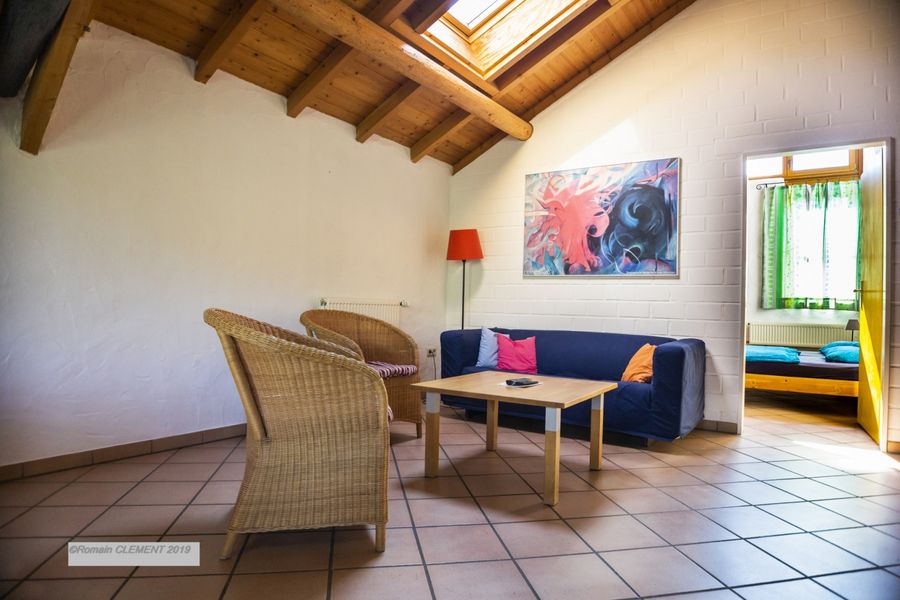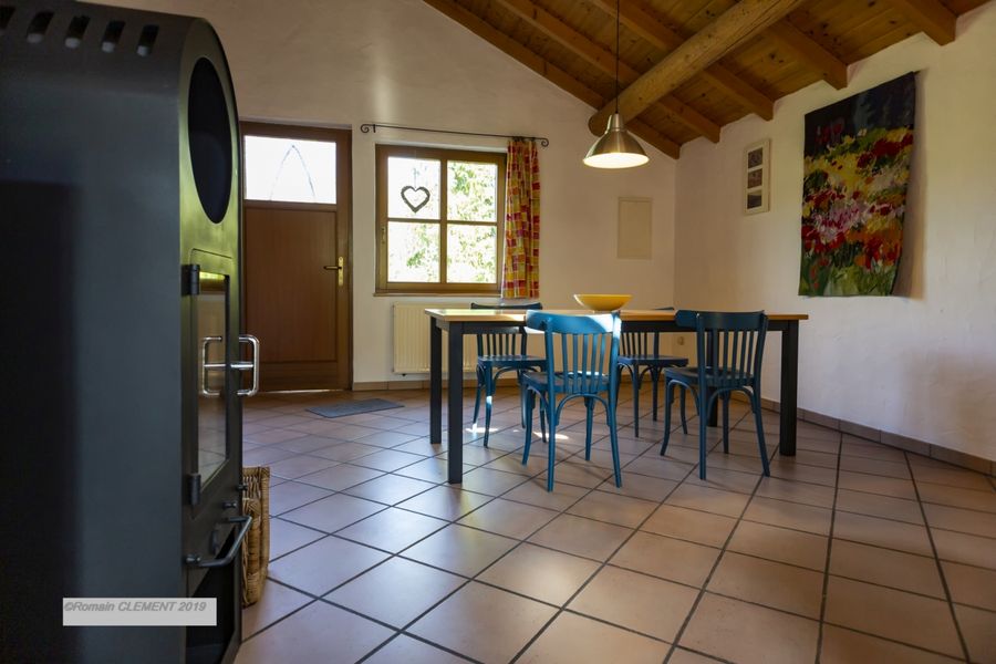 Logement spacieux (85 m2) et confortable (2 chambres à coucher) aménagé avec soin et style. Situation calme en pleine verdure au bord du village.