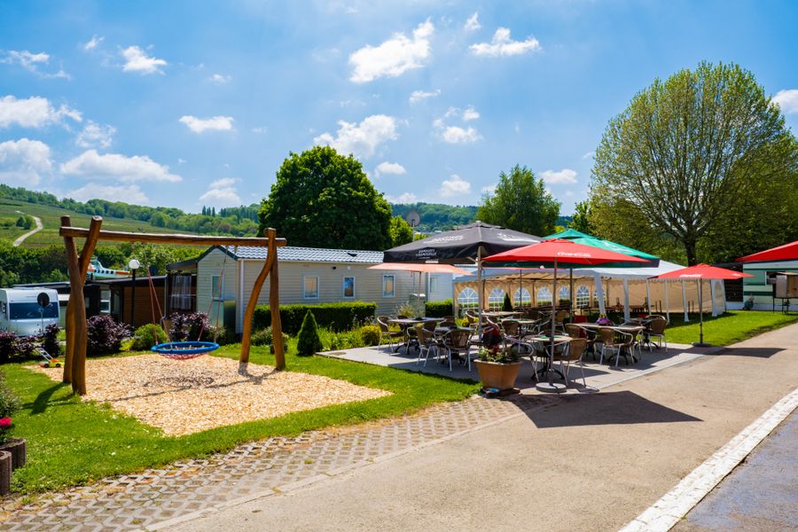 Au bord de la Moselle. Location de cabanes en bois chauffées. Piscine en plein air. Courts de tennis. Jeux pour enfants. Promenades.Rent a bike. Excursions en bateau.