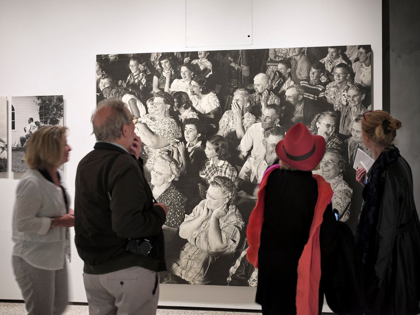 À quoi peut bien ressembler un portrait de l’humanité ? Quelles en sont les caractéristiques centrales ? Chacune des photos de l’exposition semble accrochée exactement à l’endroit auquel elle appartient, avec une évidence profondément organique. Les photos sont accompagnées d’extraits de textes de Shakespeare, James Joyce, Thomas Paine et Lillian Smith, laissés là, à côté, sans autre explication. « Deep inside, in a silent place where a child’s fears crouch » : cette citation de l’écrivaine Lillian Smith, imprimée en blanc sur noir, est accolée à des photos d’enfants pauvres, de petites filles et de petits garçons qui lancent à l’objectif un regard de résignation ou de désespoir, derrière du fil de fer barbelé, dans un paysage morne, parfois aux côtés d’une mère dont le regard aussi trahit la cruauté de la vie. Devant une petite maison isolée que n’entoure qu’une prairie sauvage, trois fillettes se tiennent à la clôture du bétail et me regardent d’un air grave. La cadette a les cheveux blonds, les deux autres les ont foncés. Je ne peux m’empêcher de penser à mes propres filles, deux grandes brunes, une petite blonde. Elles ont à peu près le même âge que celles de la photo, dont je ne sais rien. Je ne sais pas ce qu’elles sont devenues, combien de temps elles ont vécu. Pourtant, j’ai la sensation d’être liée à elles, pour nulle autre raison que de les avoir vues.