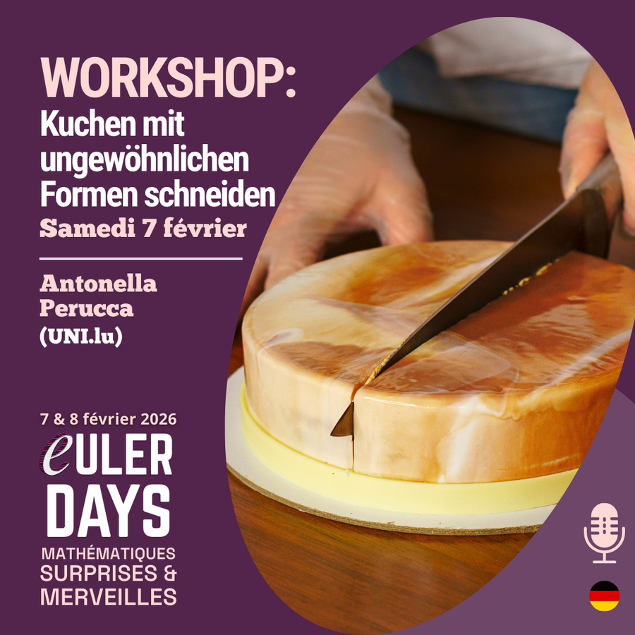 - WORKSHOP : Kuchen mit ungewöhnlichen Formen schneiden – "In der mathematischen Welt gibt es sogar unendliche Kuchen !" (Antonella Perucca – Uni.lu) – DE