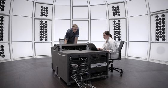 Au centre de l’œuvre se trouve une partition graphique composée de quatre-vingt-un symboles formant un alphabet musical. Grâce à une application personnalisée et des interfaces spatiales, les visiteurs peuvent activer les formes pour déclencher des sons, des échantillons et des synthèses, transformant la notation visuelle en un environnement sonore interactif. L’œuvre s’inspire des traditions de la musique expérimentale et de la notation graphique tout en les étendant à des formes spatiales, tactiles et contemporaines.
