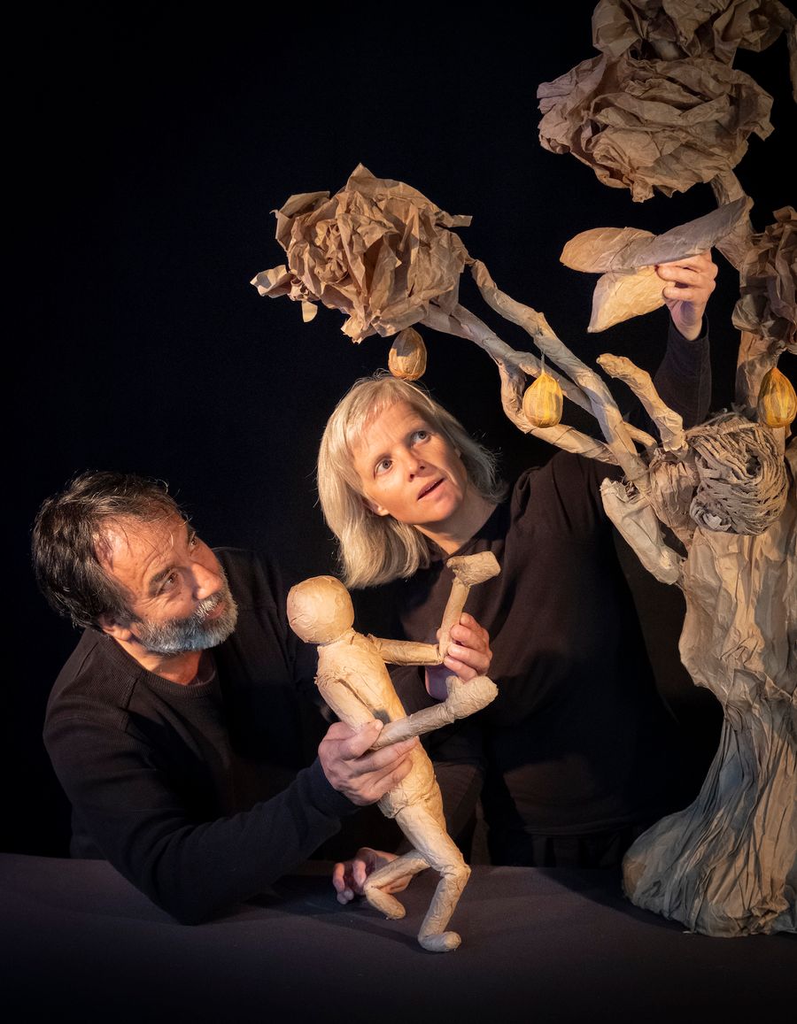 Un spectacle poétique, musical et plein d’humour, dans un univers de papier, joué à quatre mains selon la technique japonaise du bunraku.