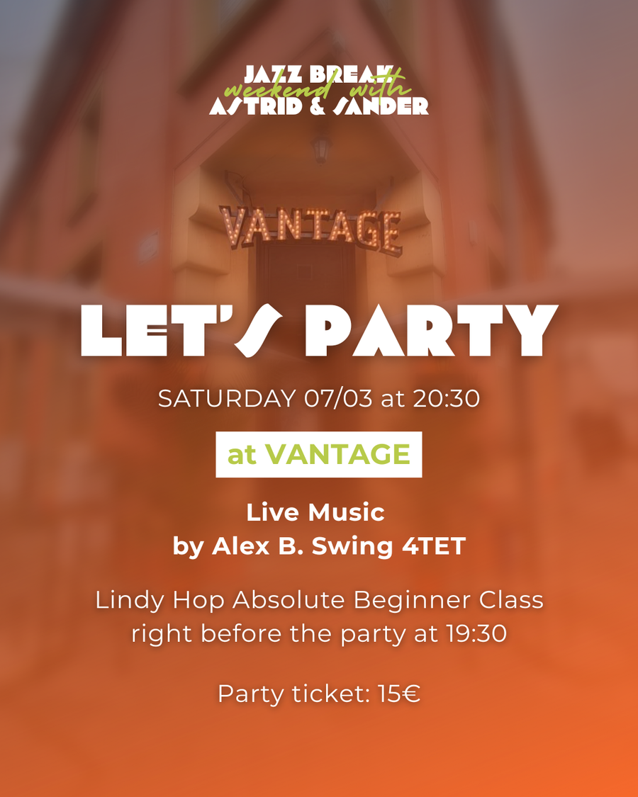 Vous adorez la musique Jazz? Vous dansez le Lindy Hop, le Solo Jazz ou toute autre danse Swing ? Ou vous êtes curieux d'en savoir plus ? Alors venez rejoindre la soirée de Jazz Break à Vantage - House of Music, et le concert du groupe Alex B. Swing 4TET.