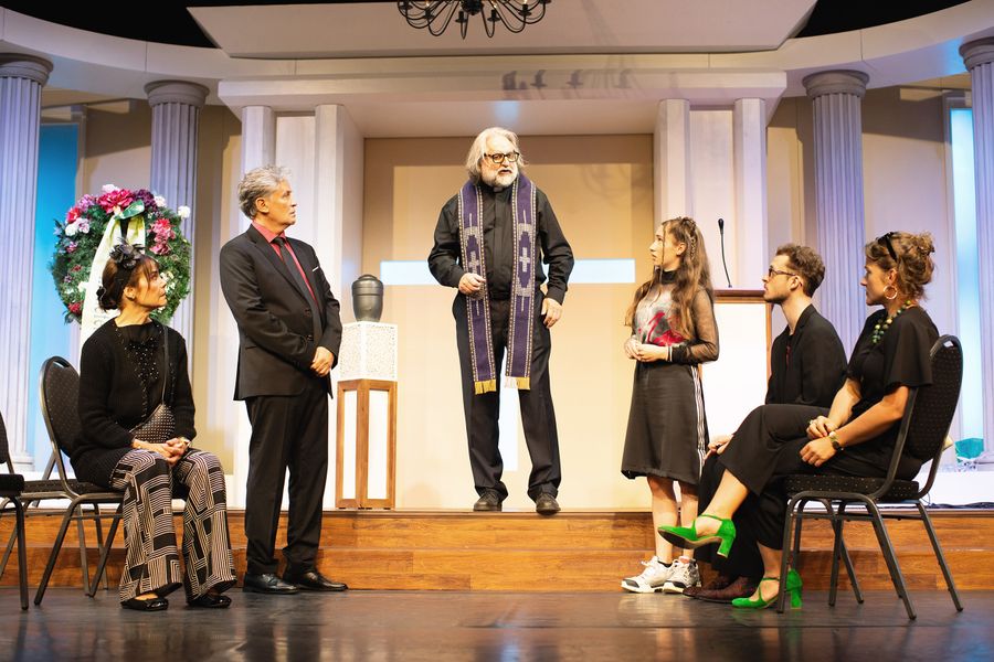 Die Schlichtungsversuche des Pfarrers laufen ins Leere, während sich die Führungsetage der Firma in einem hochaktuellen und pointierten Kampf der Gegensätze befindet..