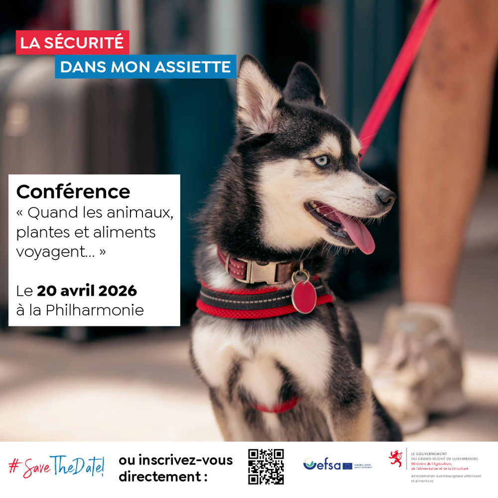 L’Administration luxembourgeoise vétérinaire et alimentaire (ALVA) en tant que Point Focal de l’EFSA (Autorité européenne de sécurité des aliments) a le plaisir de vous inviter à sa conférence annuelle «La sécurité dans mon assiette», qui se déroulera le 20 avril 2026 à la Philharmonie de Luxembourg.