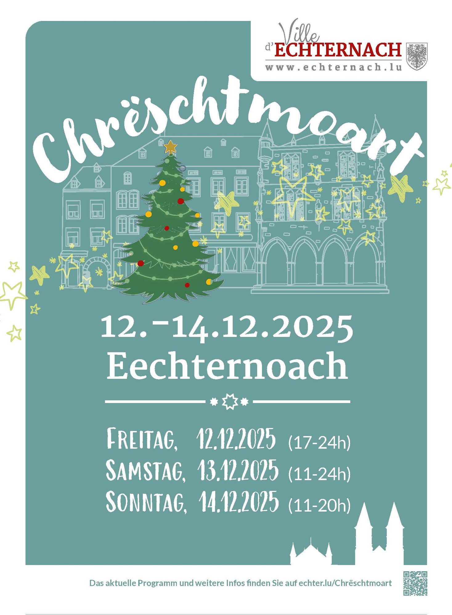 Réjouissez-vous avec nous de ce week-end de marché de Noël dans le centre historique de la ville abbatiale d’Echternach ! Au coeur de la vieille ville pittoresque, des stands décorés avec amour vous attendent avec des délices régionaux, de l’artisanat fait main et des idées de cadeaux.