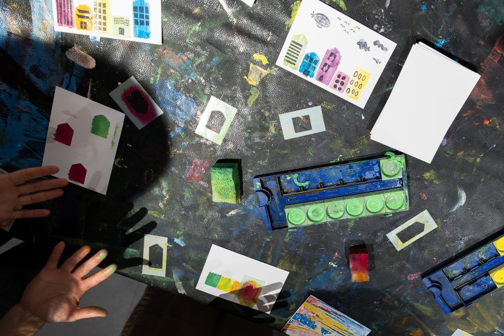 Viens au Creative Studio, au cœur de l’exposition City Visions, et crée ta propre ville au format carte postale ! Laisse libre cours à ton imagination : utilise des pochoirs pour dessiner de petites maisons colorées et fais vivre ta ville avec de petits tampons. Conçu et fait avec beaucoup de plaisir par Zoé Thill (z-Prints).