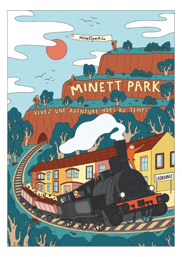 Découvrez l’ambiance du Minett Park à bord du Train 1900 à vapeur, au cœur de la nature verdoyante :