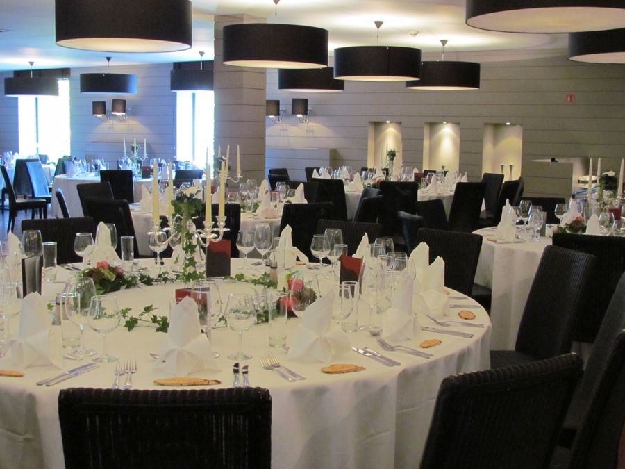 Restaurant chaleureux avec brasserie moderne, terrasse et salle de banquets au point culminant luxembourgeois – idéal pour repas et événements.
