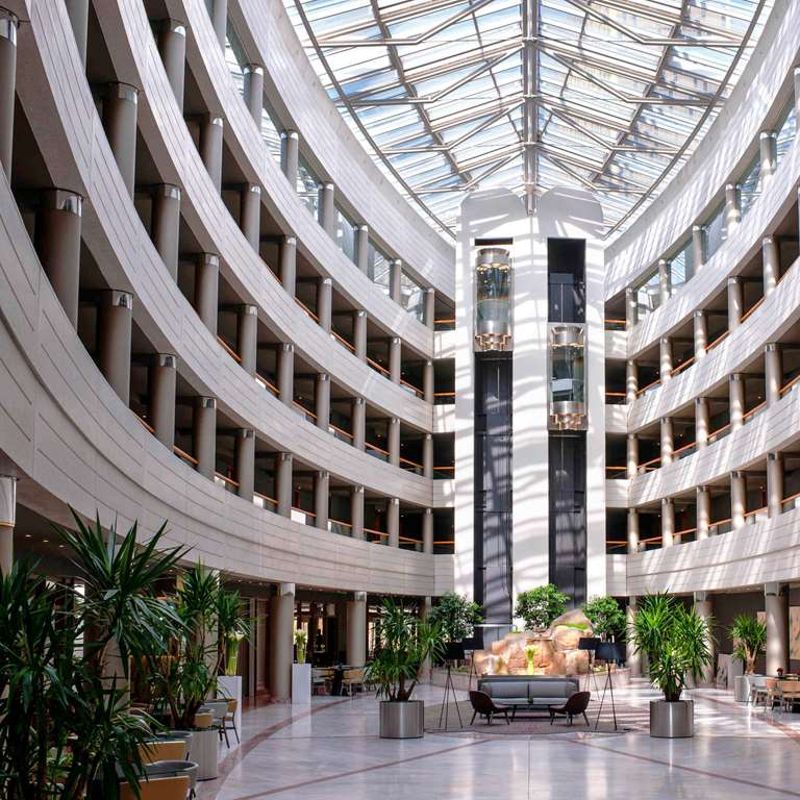 Le Sofitel Luxembourg Europe est l'unique hôtel 5 étoiles du plateau du Kirchberg. Situé en plein coeur du quartier des institutions européennes et à proximité du nouveau centre des expositions, c'est l'endroit idéal pour les clients en voyage d'affaires ou d'agrément. Vous pourrez vous détendre dans l'un des sites culturels proches de l'hôtel ou réveillez vos papilles dans l'un de nos restaurants. L'hôtel n'est qu'à 7 km de l'aéroport Findel, 5 km de la gare ferroviaire centrale et 2 km du centre-ville.