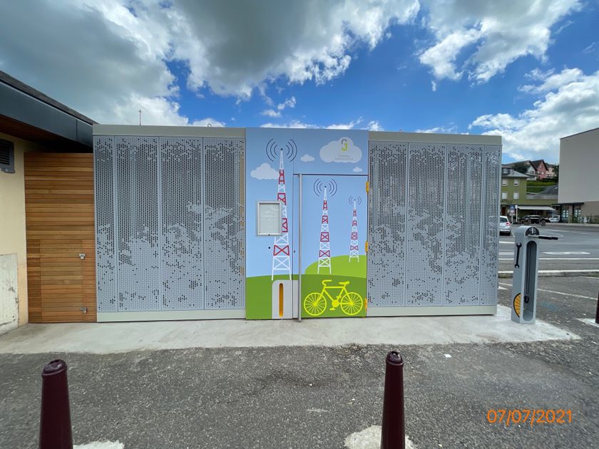 6 abri à vélos et 6 compartiments pour batteries de vélos électriques.en savoir plus ©ORT MPSL Où ? 33, Chemin J-A Zinnen, L-7626 LarochetteStation de recharge et de service pour vélos Larochette