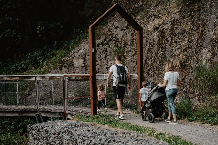 La "Ourdall Promenade" invite à la découverte de la vallée de l’Our entre Vianden et Stolzembourg. Si tu pars de Vianden, tu montes tout de suite une petite côte où tu traverses le barrage de l’Our. Ce chemin spécialement aménagé passe en partie sur des passerelles en bois directement au bord de la roche. N’oublie pas de te retourner et de profiter de la vue sur le château de Vianden et la chapelle Bildchen. Le chemin continue par Bivels jusqu’à Stolzembourg, où tu peux reprendre le bus pour retourner à Vianden.
