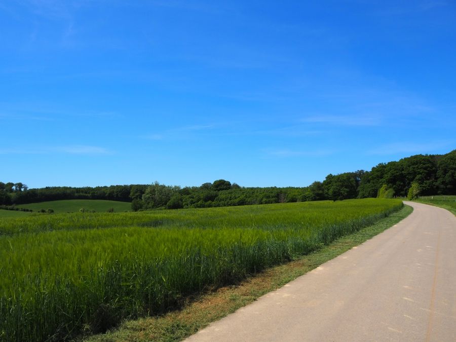 Merci de suivre la signalisation avec le losange bleu sur fond blanc, le parcours est balisé dans les deux sens.