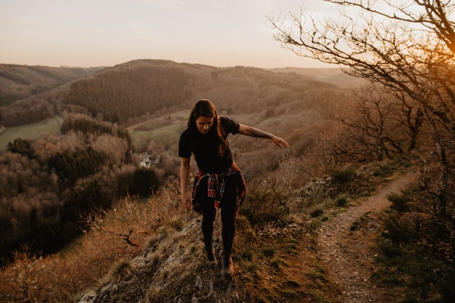 Le long de la rive de la Sauer, à travers une petite tourbière, le chemin monte sur un petit sentier fin et raide au-dessus des crêtes d’ardoise jusqu’au Houfëls, en français Haut Rocher. N’oublie pas de te retourner et de profiter de la vue ! Arrivé en haut, la vallée et le moulin de Bigonville s’étendent à tes pieds. Ça et la fraîcheur à la fin du parcours au moulin de Bauschleiden, tu l’as vraiment mérité !