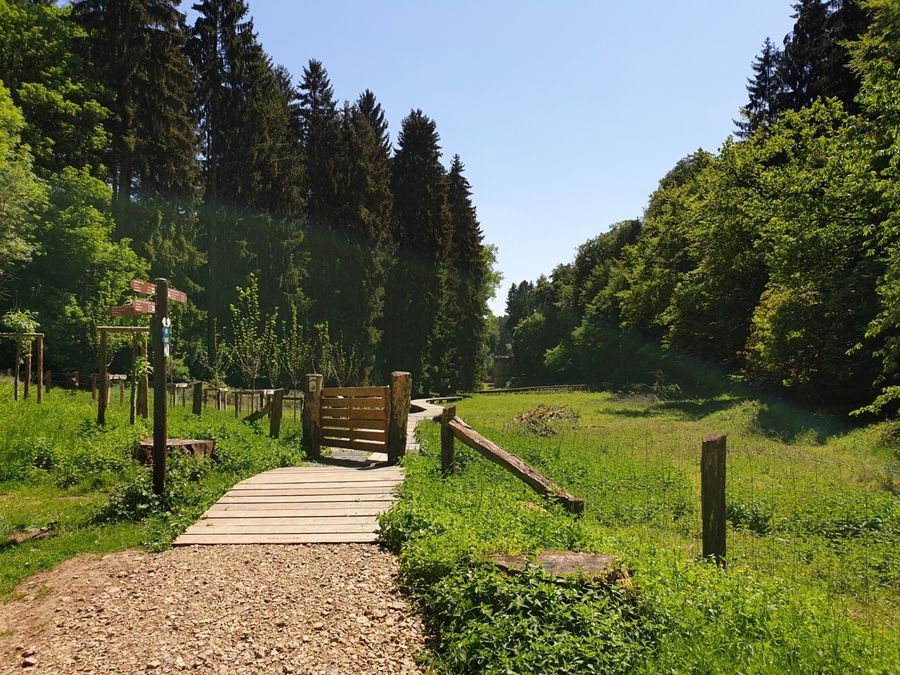 Après avoir traversé un petit village, la route continue à travers la forêt, longe un ruisseau, et descend vers la réserve naturelle Saueruecht. De beaux points de vue offrent une vue sur la vallée de la Sauer.