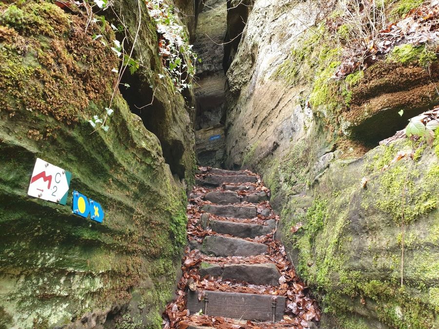 Parcours aventure pour les grands et les petits explorateurs : ce chemin passe par des fissures rocheuses parfois complètement obscures et très étroites.