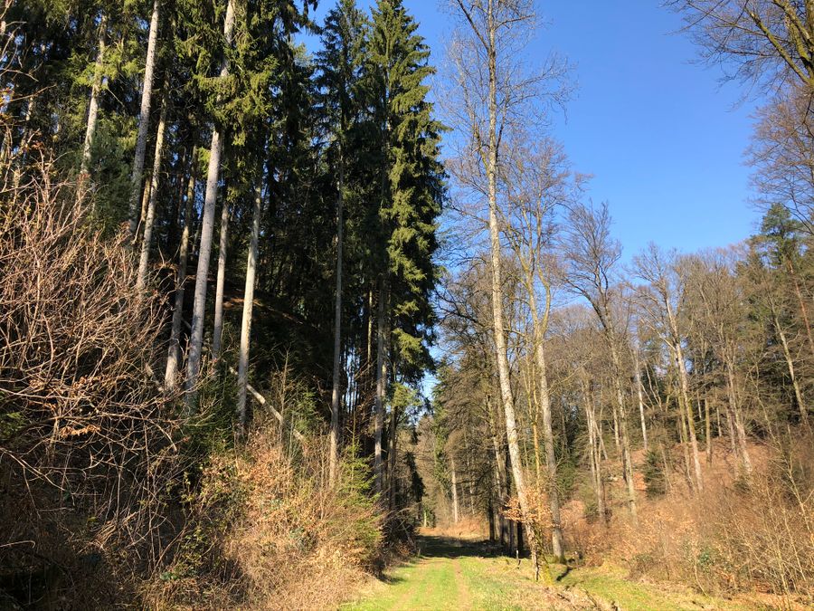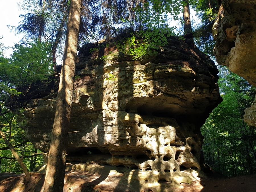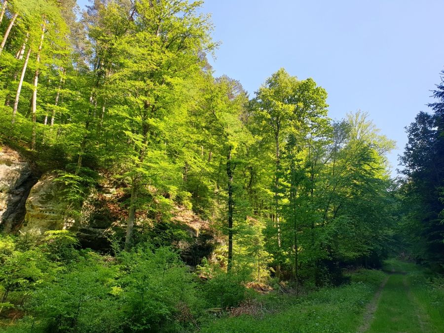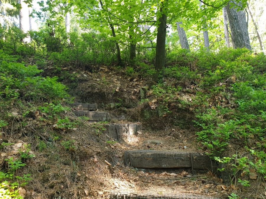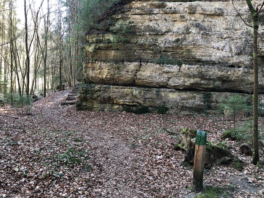 Le parcours traverse des rochers et monte doucement la colline jusqu'au point culminant de la région. Une fois arrivé en haut, il longe une colline boisée pendant un moment, avant de descendre vers le Napoleonshutt, une formation rocheuse solitaire remarquable qui rappelle une coiffe.