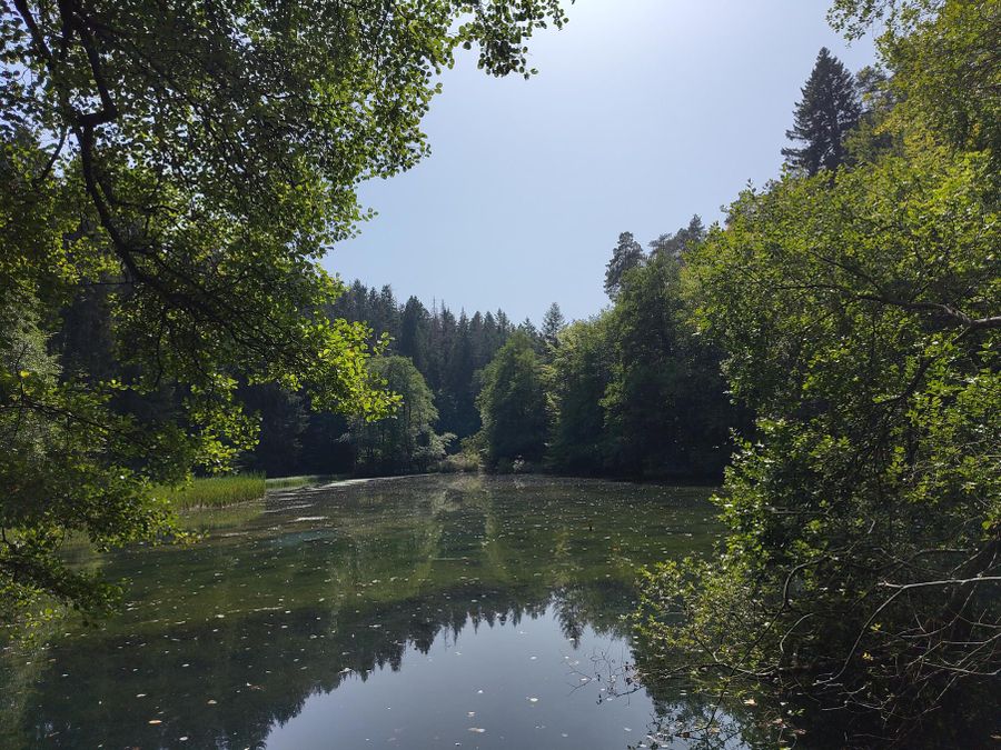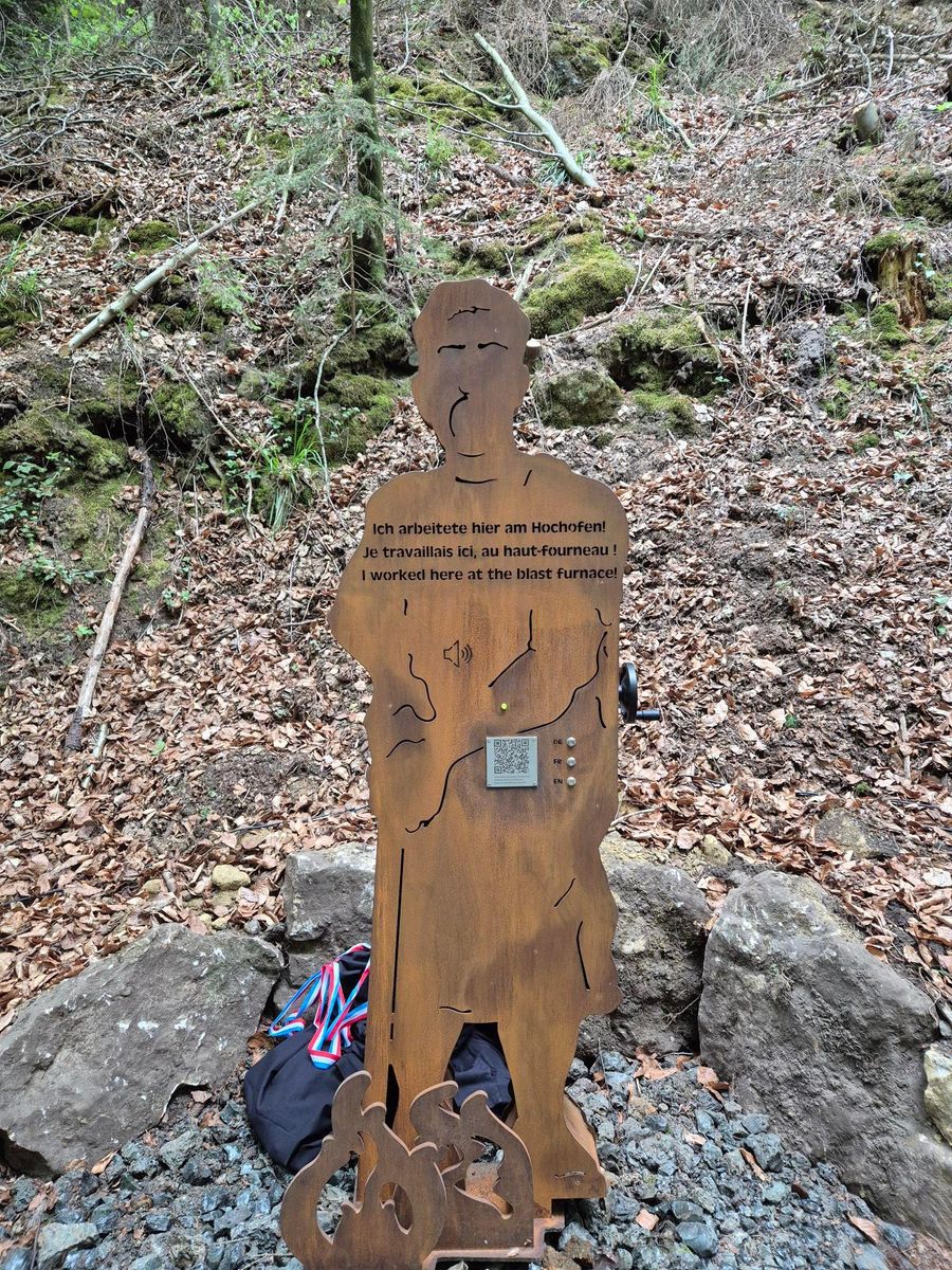 De là, il descend par des escaliers vers Al Schmelz, un géotope. Le petit étang est un dernier vestige visible de l'époque de l'ancienne métallurgie du fer. Grâce à un code QR et une station interactive, on découvre des informations passionnantes sur l'histoire du lieu.