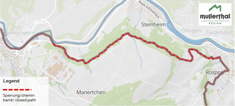 Attention : liaison entre Rosport et Echternach fermée jusqu'au 28 février !