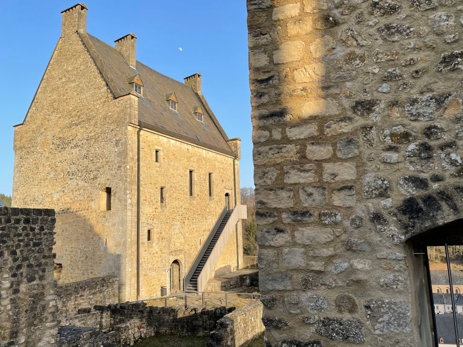Le château surplombe le pittoresque village de Larochette, lui donnant un cachet tout particulier. Les bâtiments du château, dont l’origine est antérieure au 12e siècle, sont situés sur un promontoire de grès du Luxembourg et dominent d’environ 50 mètres la vallée de l’Ernz Blanche, affluent de la Sûre. La plus vieille partie du château est la maison de Hom bourg, réduite à l’état de ruines après un ter rible incendie en 1565. La maison de Créhange est la seule à avoir été entièrement restaurée. Des expositions d’art temporaires remplissent de vie les murs historiques. Les sentiers de ran donnée et pistes de VTT environnantes offrent de splendides panoramas sur l’intégralité de l’enceinte.