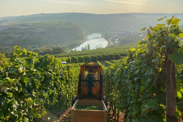 Promenez-vous dans ce paysage viticole vallonné et observez les vignerons qui récoltent les raisins.