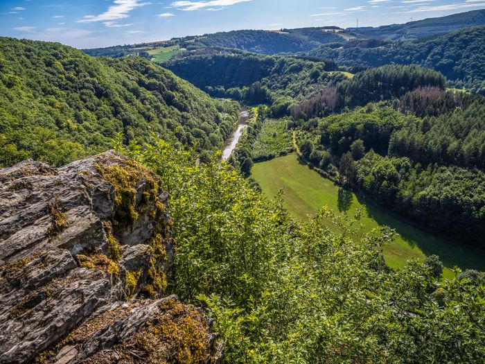 The Priedegtstull viewpoint near Erpeldange-sur-Sûre can be reached via various hiking trails and offers a breathtaking view over a loop of the Sûre river.