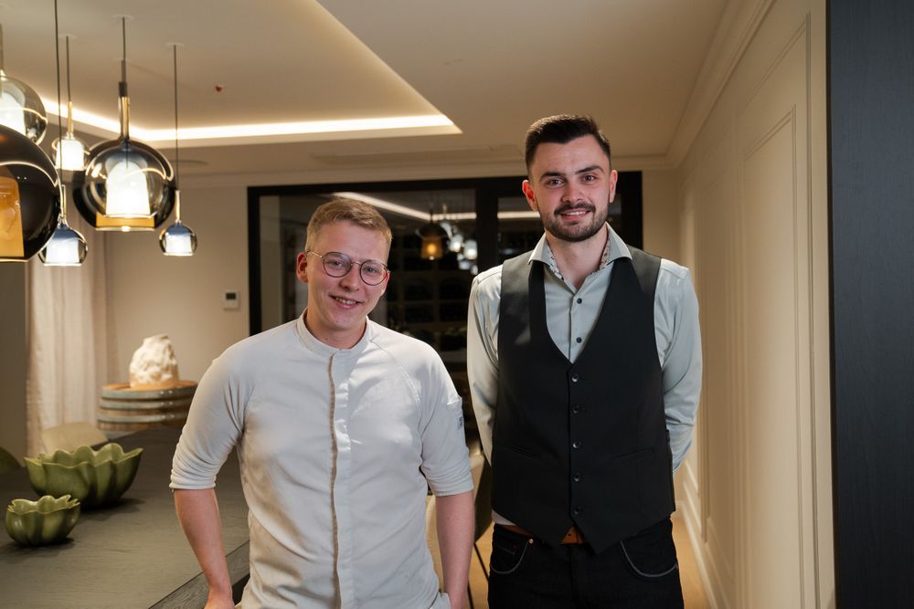 Elegant restaurant at Château d’Urspelt with fine dining and a terrace in the historic courtyard. Part of the hotel.