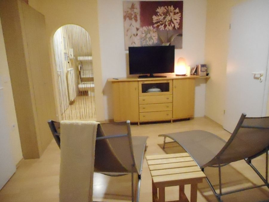 For your relaxation, our wellness oasis with a sauna, solarium, infrared cabin, and relaxation room is available, accessible directly from your apartment upon request.