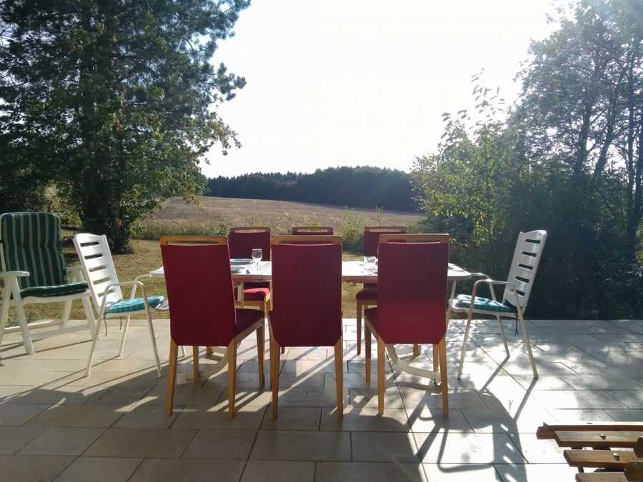 The holiday home consists of a living room with fireplace with fully equipped kitchen, a double bedroom, two bedrooms with single beds, a shower and a separate toilet. It has a terrace with a beautiful view of the Ösling hilltops. The large flower-filled garden with herb and fruit trees invites for restful relaxation. A garage and a parking space are attaches to the house with an internal area of about 100 square meters.