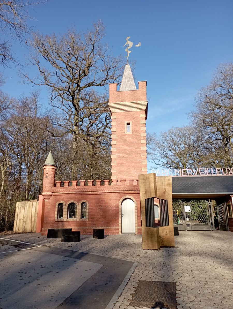 You've made it to your destination: Here in front of the entrance to the "Parc Merveilleux" animal park in Bettembourg, the regional hiking trail "Minett Trail" not only has a start and end point, the entrance is also the perfect station for an unusual overnight stay. Because here in the entrance area in the form of a small castle gate, a very unusual "Kabaischen" of the trail was created. Ideal for families, but also guests without small children will be able to spend a wonderful night here.