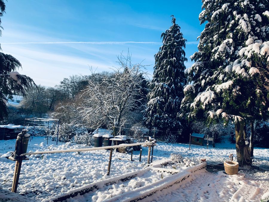 Garden: two large lawns with old trees. Grilling is of course possible. We have dogs that live in a large fenced area as well as cats that roam freely. We therefore ask dog owners to keep them on a leash in the yard. Thank you!