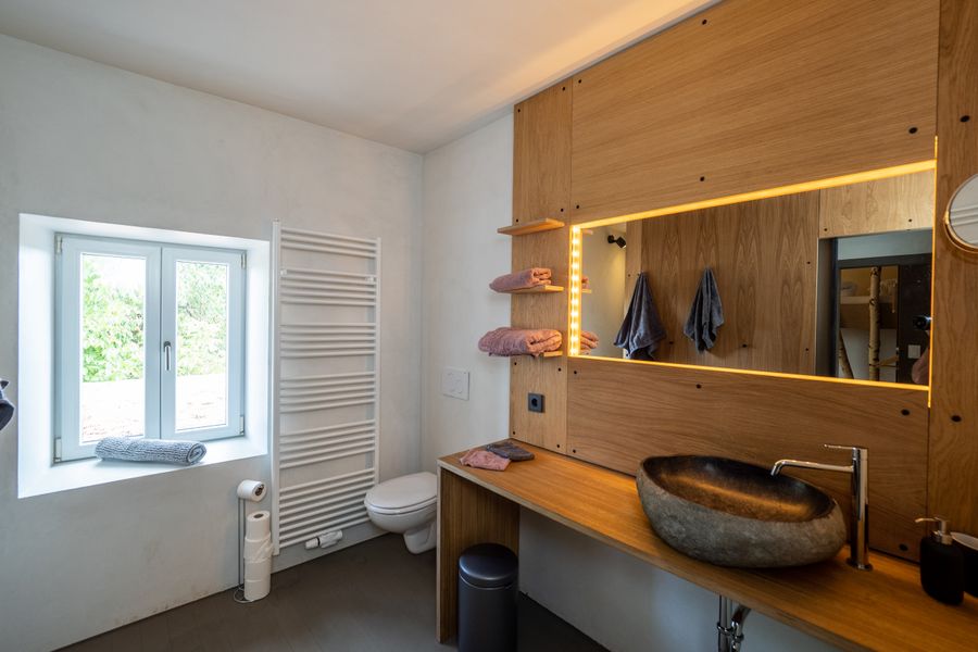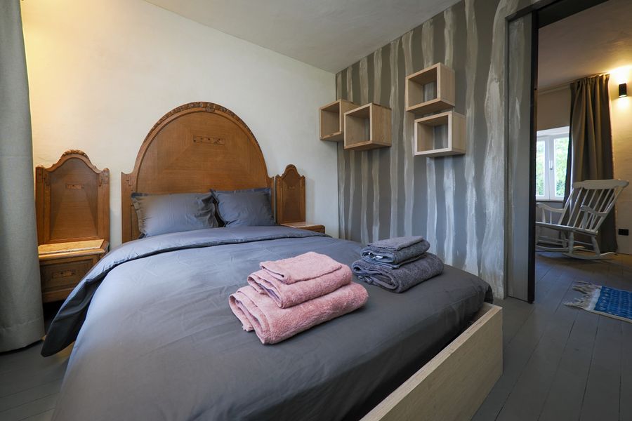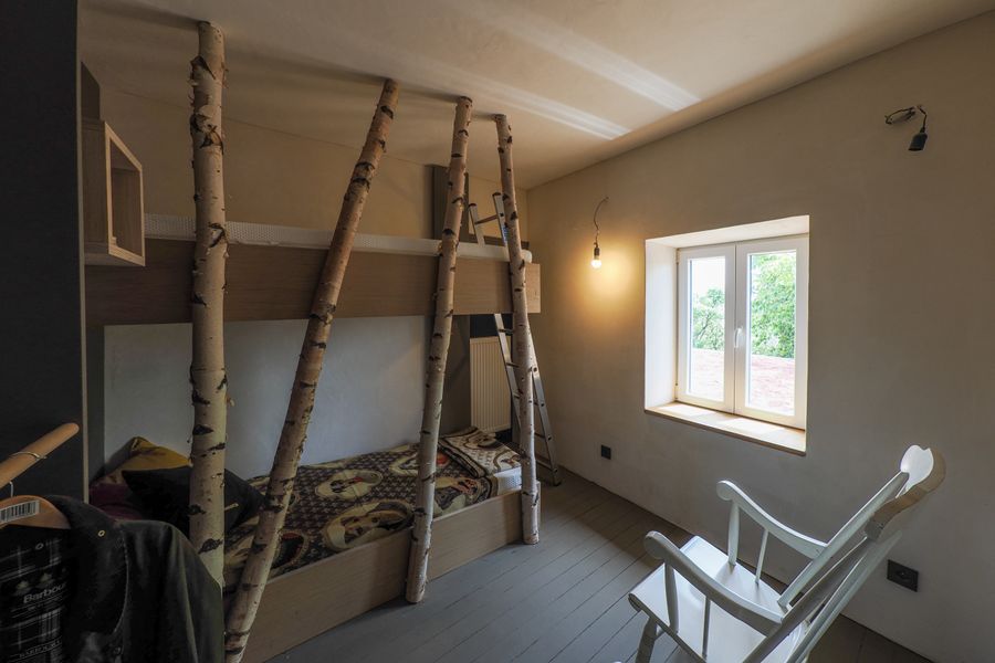 There are three double rooms and one family room for four people, with a double bed and a bunk bed. The Man’s Cave also has a small kitchenette for preparing simple meals, while the large kitchen in the adjacent house is available for more elaborate cooking (when booking per room).