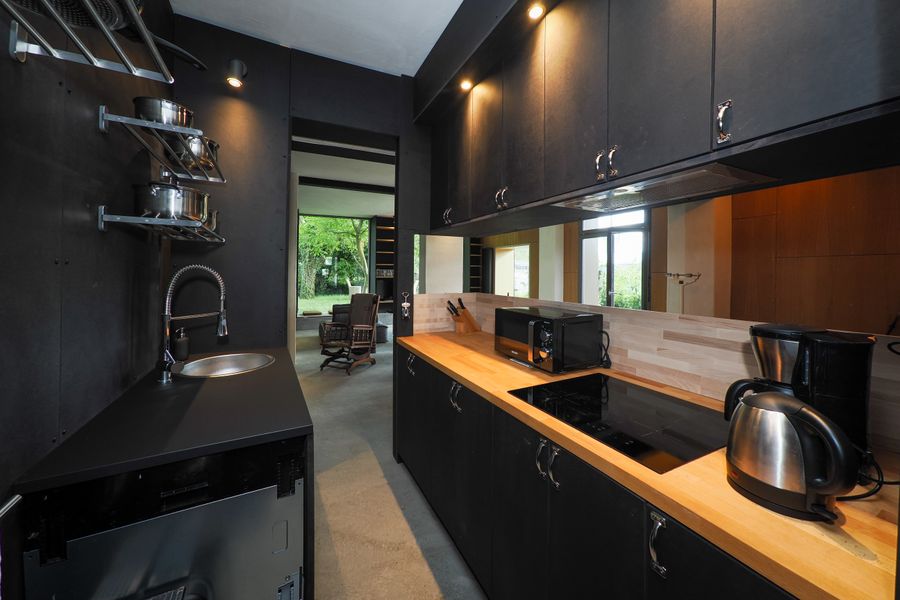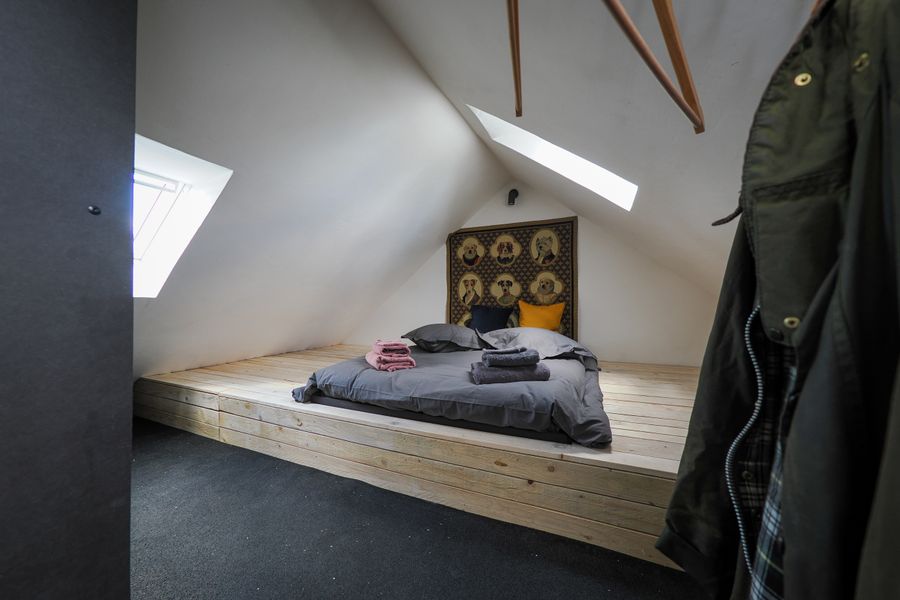 For privacy, there are four double rooms, all cosy, modern and decorated according a certain theme.The Stairway to Heaven room has sloping ceilings and a tent-like atmosphere, creating a very special experience. For all activities such as cooking, eating, reading, relaxing, thinking, discussing, the spacious communal areas such as the kitchen, dining table, office, living room and garden are available. The architecture and interior are designed so that everyone can find beautiful places to rest in the spacious rooms.