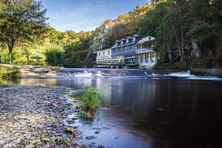 This rural hotel with its gourmet restaurant and bistro is beautifully situated in its own private park on the banks of a river in the Haute Sûre valley, an ideal place for many outdoor activities. Located in the middle of a rocky mountain landscape and vast forests, this is the perfect place for fishing, walking, canoeing, mountain biking and cycling. It is also a departing point for visiting numerous tourist attractions in the northern part of the country. In the Sûre you can go for a refreshing swim in summer, or catch trout with fly-fishing and have your trout prepared for dinner by the hotel's cook. From the rooms situated in the front of the hotel, the restaurant and its terrace, you will have a wonderful view over the surrounding river landscape.