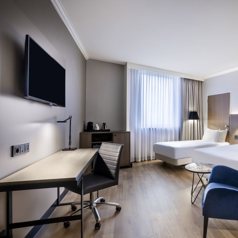 There is a total of 149 rooms at NH Luxembourg Airport. The spacious rooms are decorated in warm neutrals and feature free Wi-Fi. We have connecting rooms available which are a perfect for groups and families. For meetings and events, we have seven function rooms that can accommodate up to 110 people.