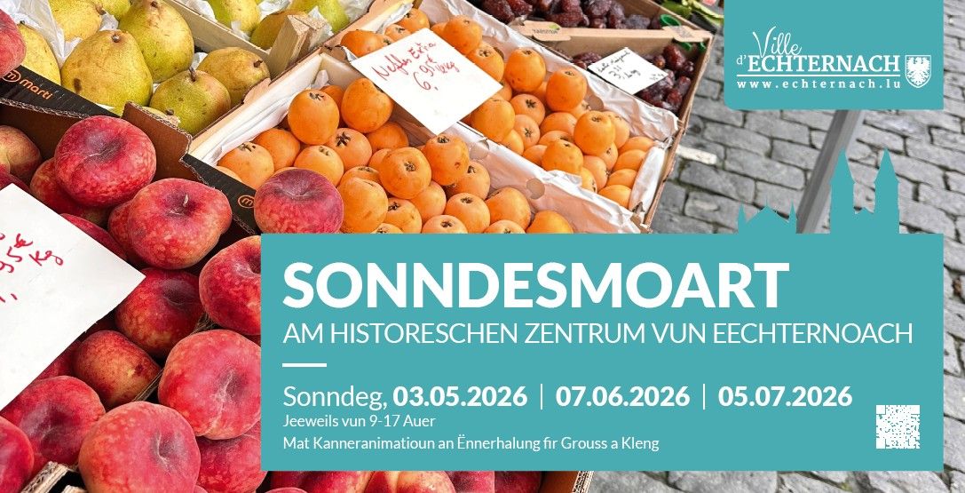 Komm dohin a looss dech vun der Villfalt an dem Charme vum Sonndesmoart begeeschteren! Mir freeën eis op däi Besuch!
