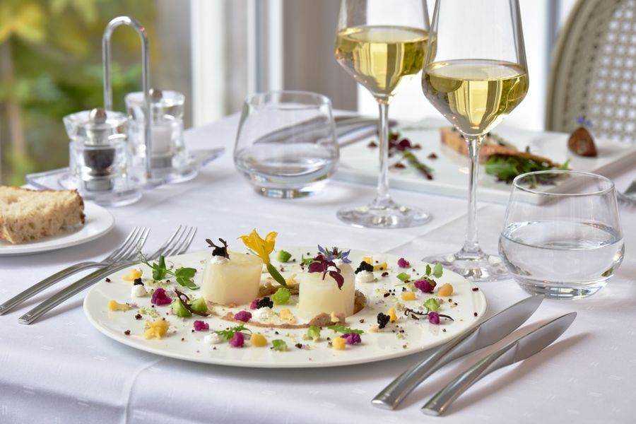 Der Chef bietet eine feine französische Küche an, die Qualität mit Geschmack vereinigt. Er interpretiert mit Fingerspitzengefühl die großen Klassiker der Luxemburgischen Küche neu. Die Weinkarte birgt ein paar Schätze, die unser Sommelier sorgfältig ausgesucht hat.