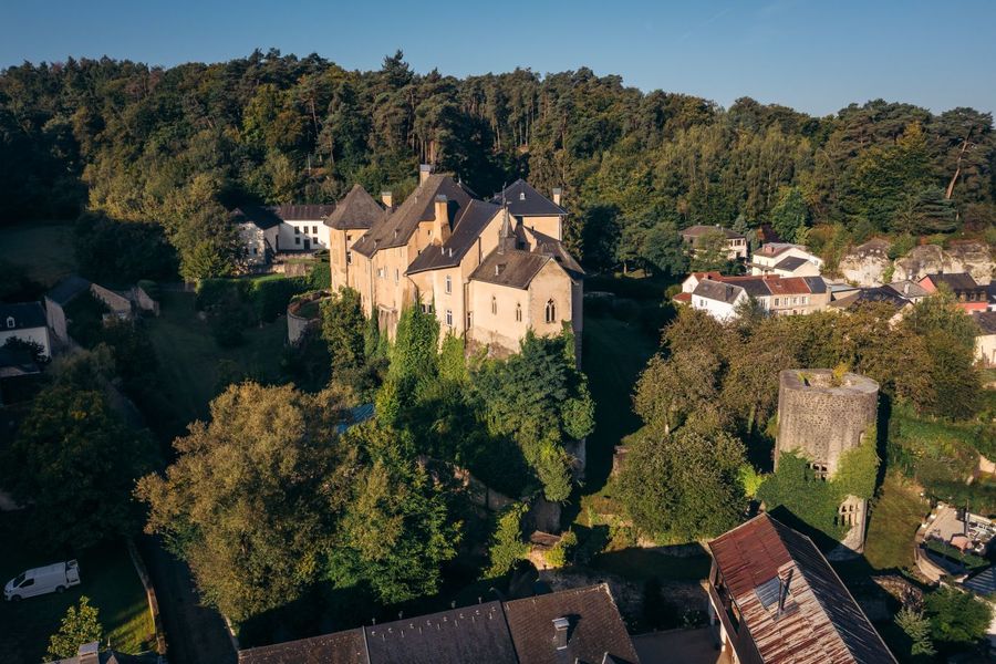 Das Schloss überblickt das malerische Dorf Larochette und verleiht ihm einen ganz besonderen Charakter. Die ersten Gebäude des Ortes stammen aus dem 11. Jahrhundert und befinden sich auf einer Landzunge aus Luxemburger Sandstein und überragen das Tal der Ernz Blanche, einem Nebenfluss der Sauer, um etwa 50 Meter. Ein Brand im Jahr 1565 ließ alle Gebäude auf dem Gelände zu Ruinen werden. Das Haus in Créhange ist das einzige, das in den 1980er Jahren konsequent restauriert wurde.