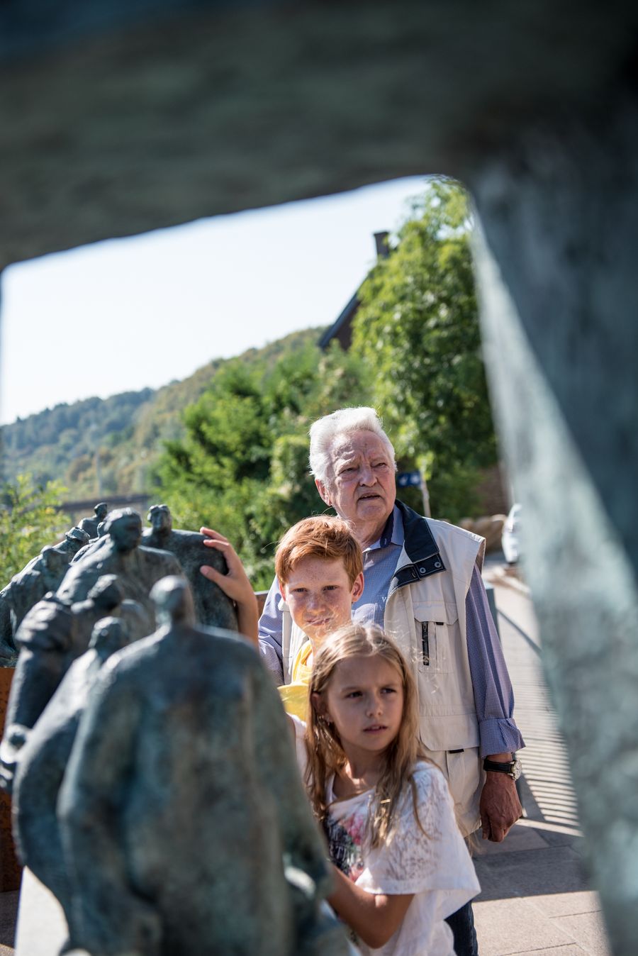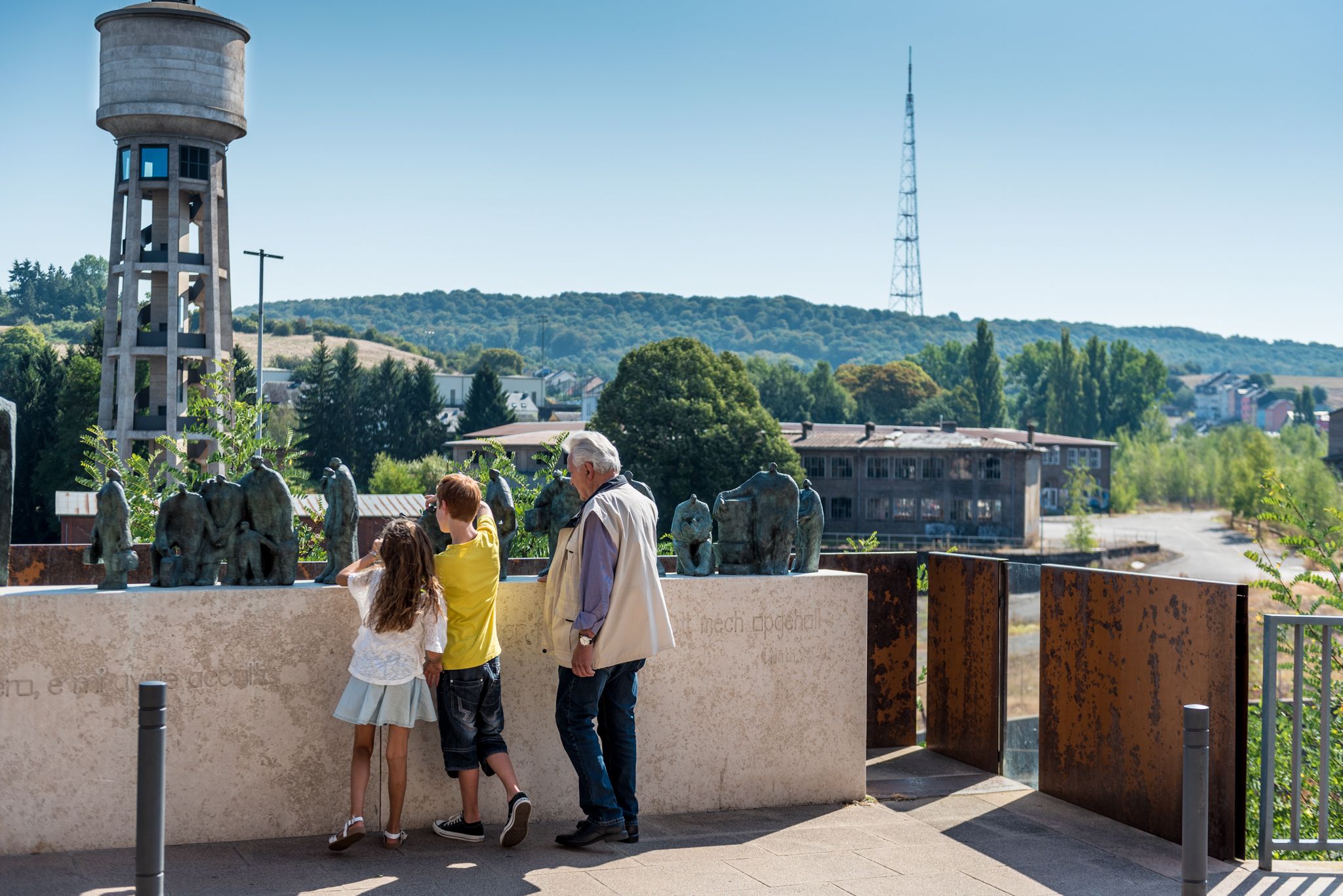 Die Skulptur zeigt italienische Einwanderer, die mit ihren Koffern die „Porte d’Italie“ überqueren, die Brücke, die symbolisch das „italienische“ Viertel vom Stadtzentrum trennt. Auf der anderen Seite des Tores werden sie von einer Familie begrüßt. Auf der Basis findet sich der italienische und luxemburgische Text von Matthäus 25:35: Ero straniero, e mi avete accolto – „Ich war ein Fremder, und du hast mich aufgenommen.“
