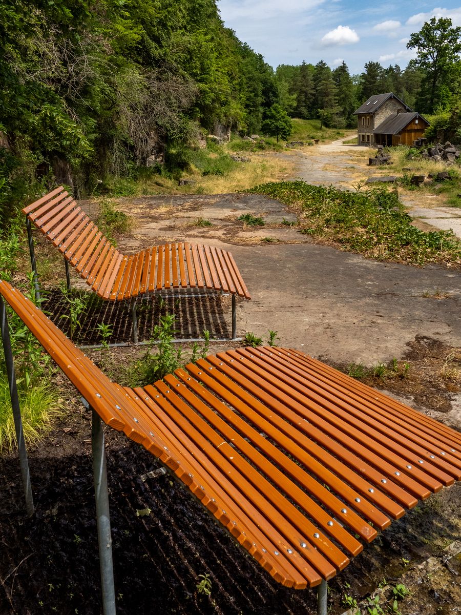 Auf dem Areal befinden sich ebenfalls Holzliegen, die zum Verweilen einladen. Der ideale Platz für einen Ausflug.