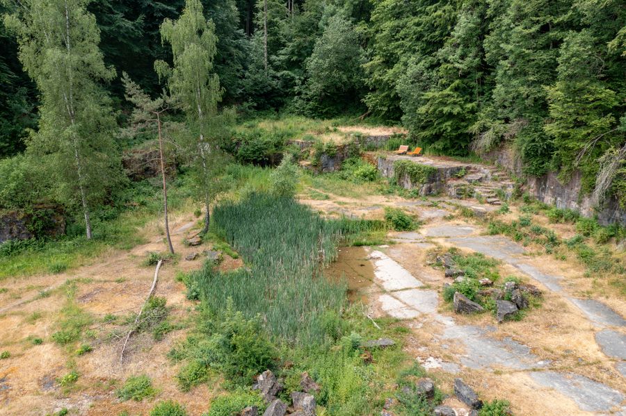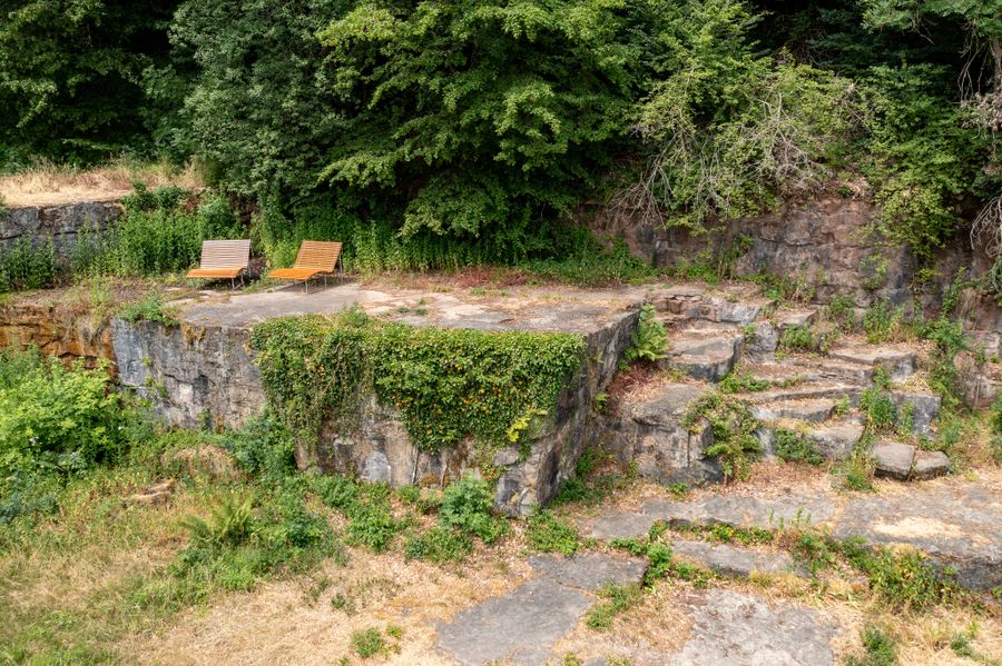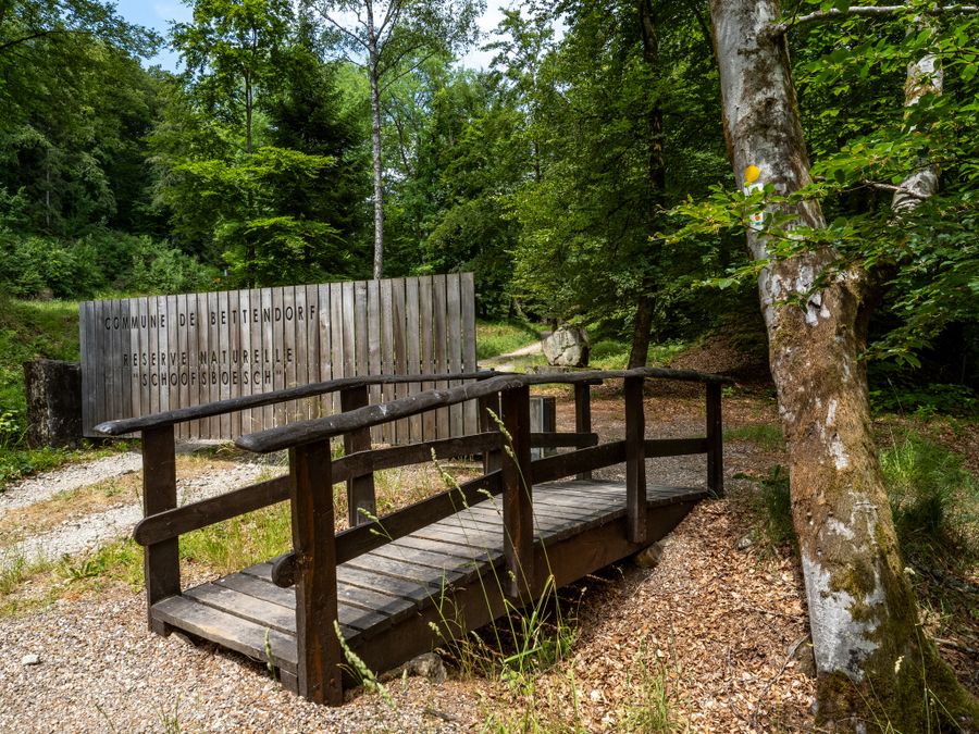 Der "Schoofsbësch", ein früherer Steinbruch, bildet das Herz eines Naturschutzgebiets. Hier stehen mehrere Picknick-Tische und Bänke zur Verfügung.