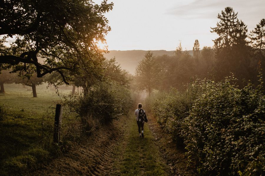 Der Wanderweg ist in beide Gehrichtungen markiert. Bitte folgen Sie dem Éislek Markierungszeichen.