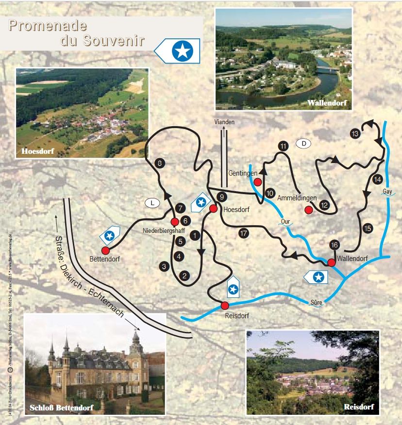 Willkommen auf dem historischen Rundgang durch das Höhenplateau von Hoesdorf und einem Teil des Westwalls in Wallendorf. Dieser Rundgang (Bettendorf – Reisdorf – Hoesdorf – Wallendorf (D) erinnert an die dramatischen Ereignisse, welche in diesem Raum in der Zeit von Ende 1944 bis 1945 stattfanden. Was jetzt eine kleine, friedliche und gefällige Landschaft ist, war einst ein hart umkämpfter Ort mit unbeschreiblich viel menschlichem Leiden.